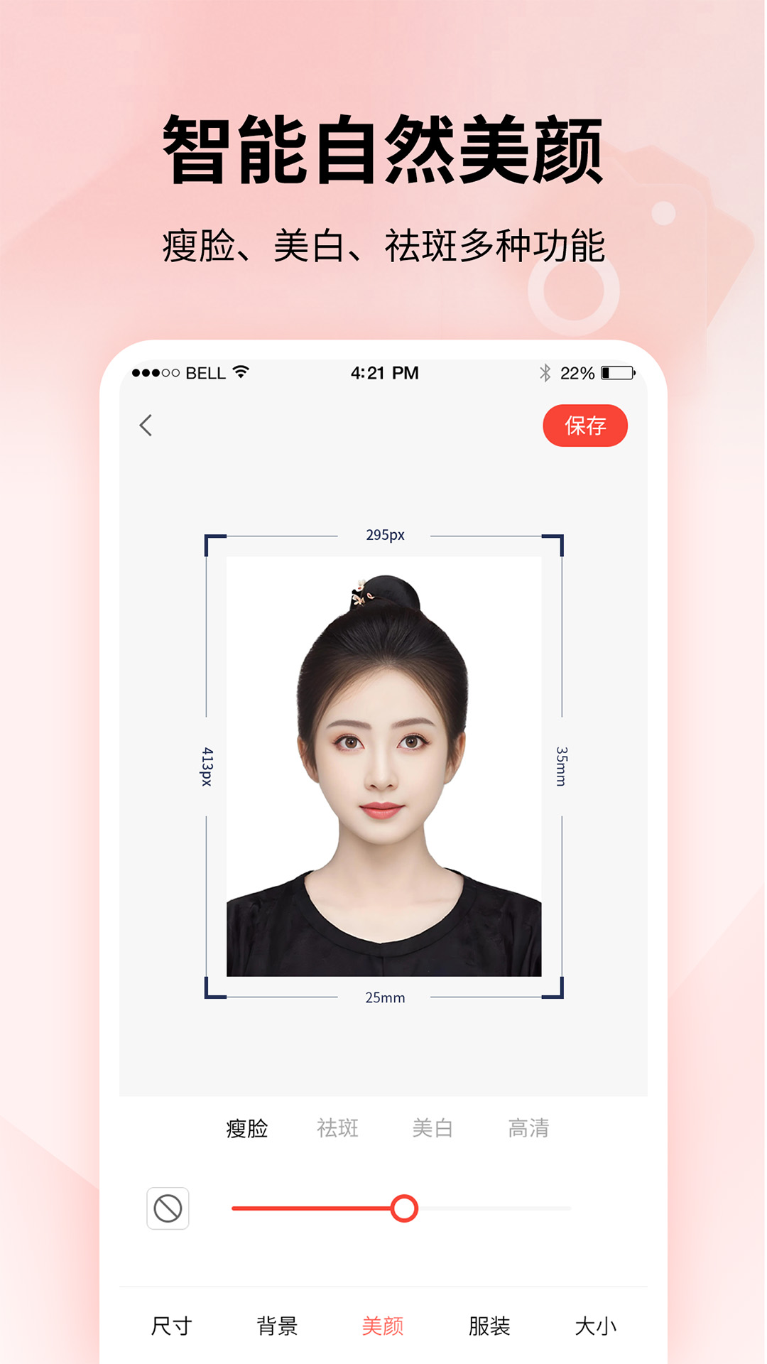1、各種規(guī)格尺寸的證件照都可以輕松制作,隨時(shí)隨地都能自拍制作。
