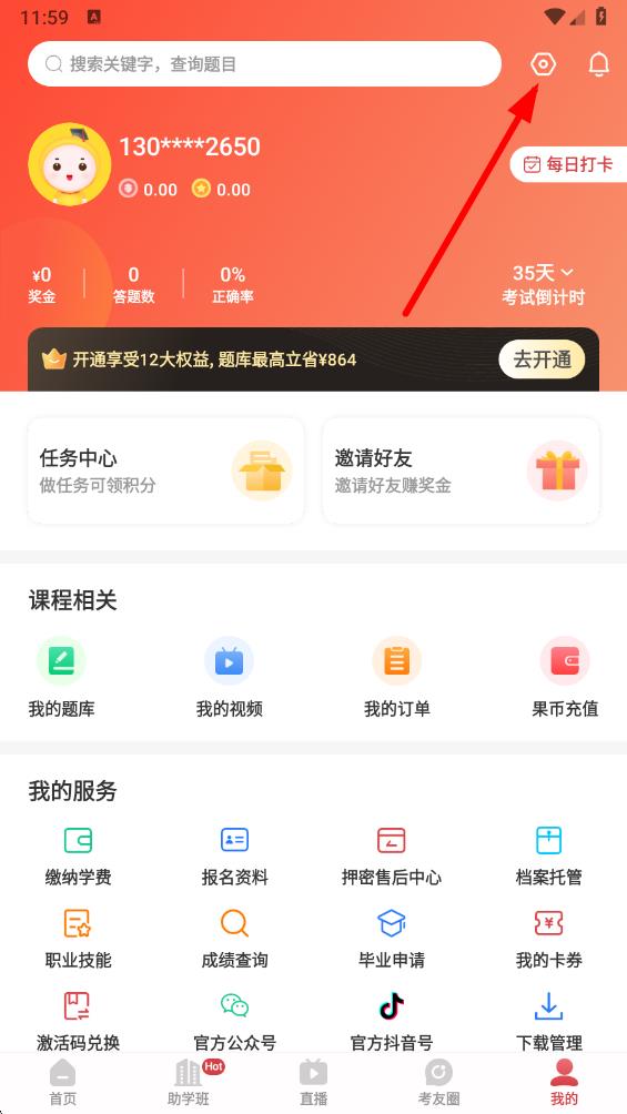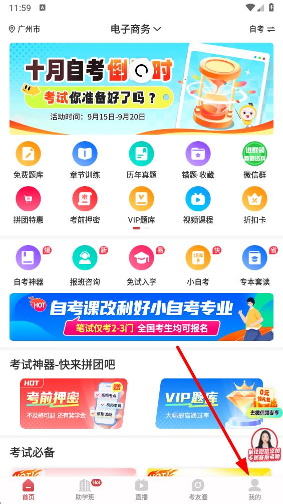1、打開(kāi)自考筆果題庫(kù)app,點(diǎn)擊底部導(dǎo)航欄最右側(cè)我的選項(xiàng),進(jìn)入個(gè)人界面。