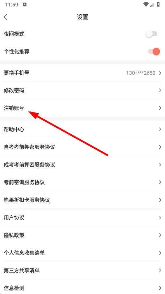 3、在設(shè)置頁(yè)面里,找到并點(diǎn)擊注銷(xiāo)賬號(hào)選項(xiàng)。