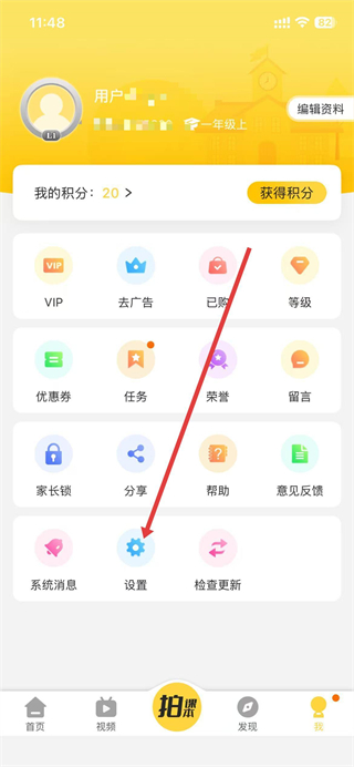 2、在我的頁面中,找到并點擊設(shè)置選項。