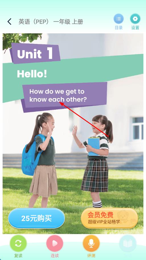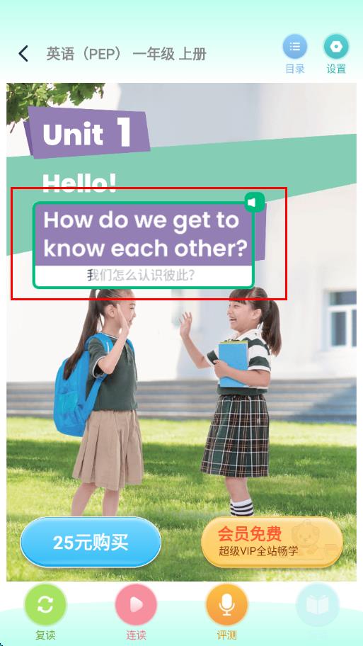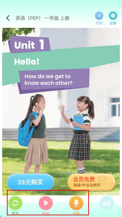 4、在頁面下方,使用復(fù)讀、連讀、評測等功能,幫助更好地學(xué)習(xí)和掌握英語內(nèi)容。