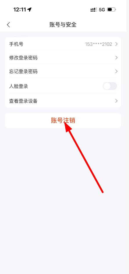 3、進(jìn)入賬號(hào)與安全頁面后,下滑找到賬號(hào)注銷選項(xiàng),點(diǎn)擊按照提示流程完成電子加油卡賬號(hào)的注銷操作。