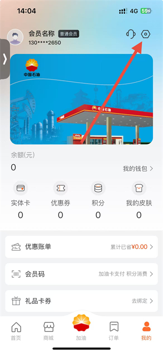 1、打開中油好客e站app,點(diǎn)擊底部導(dǎo)航欄最右側(cè)我的選項(xiàng),進(jìn)入個(gè)人信息相關(guān)頁面。