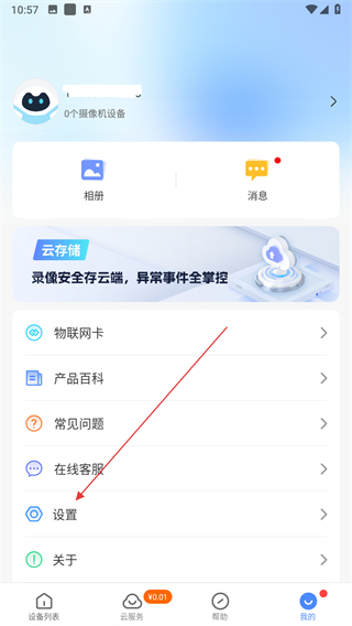 2、在我的頁面里,向下滑動找到并點擊設置選項。