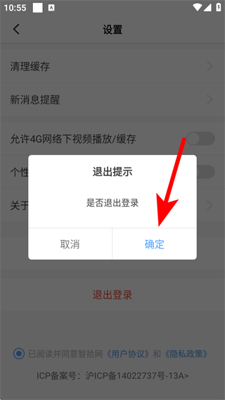 3、在設(shè)置中點擊退出登錄的按鈕,觸發(fā)退出確認(rèn)提示。