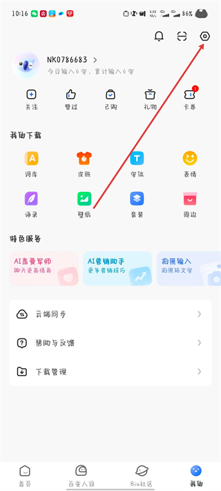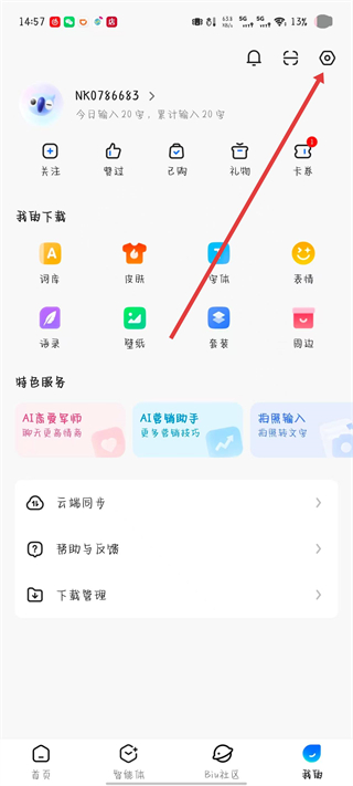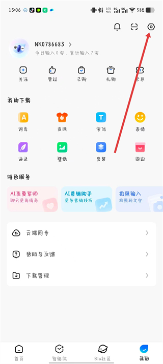 1、打開訊飛輸入法APP,點(diǎn)擊設(shè)置圖標(biāo)。