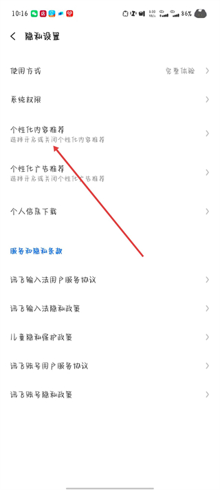 3、在隱私設(shè)置頁面,點(diǎn)擊個(gè)性化內(nèi)容推薦。