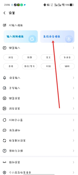 3、在點(diǎn)擊離線語音增強(qiáng)選項(xiàng),進(jìn)入離線語音。