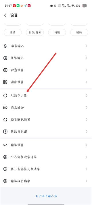 3、找到AI助手小藍(lán)選項(xiàng),點(diǎn)擊該選項(xiàng)進(jìn)入頁面。