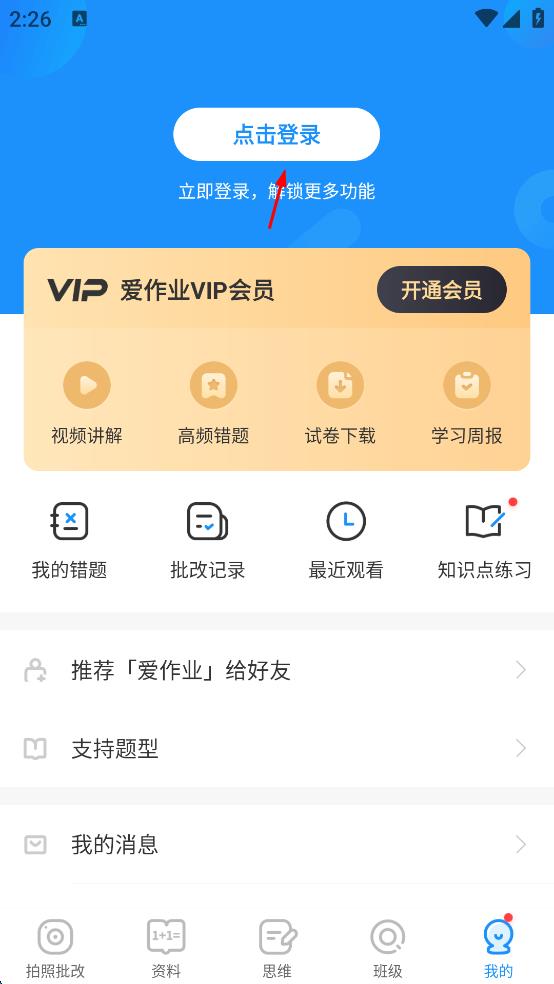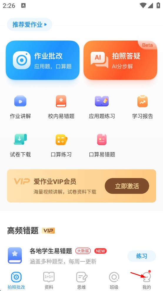 2、在愛作業(yè)APP主界面,點(diǎn)擊右下角“我的”,進(jìn)入個人頁面。