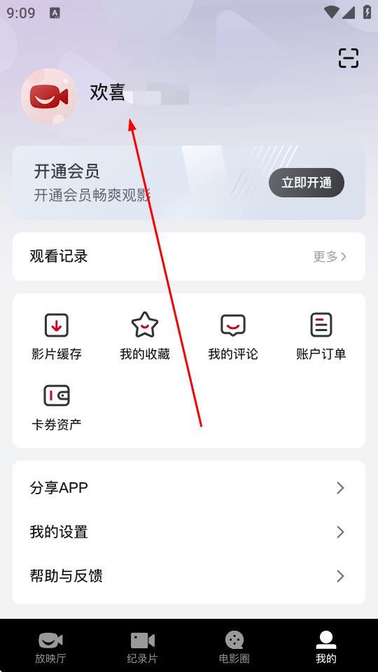 4、注冊成功后,頁面會顯示您的賬號昵稱,此時即表示您已成功注冊歡喜首映賬號。