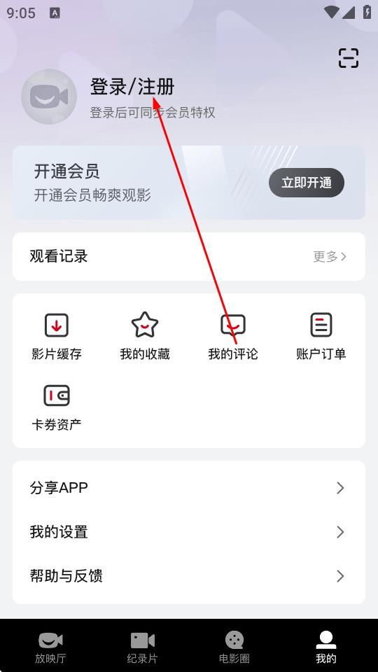 2、在我的頁面中,點擊登錄/注冊選項。