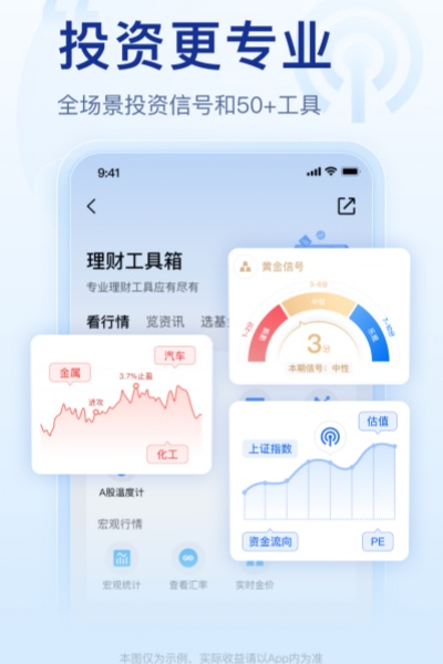 理財(cái)通 App 全場景新增「投資信號(hào)」功能,助你搶占投資先機(jī)!在搜索、行情、詳情頁、自選,都將可能看到各資產(chǎn)投資信號(hào)(進(jìn)攻&有機(jī)會(huì)、觀望&再看看、防御&需謹(jǐn)慎)及詳細(xì)分析。信號(hào)持續(xù)擴(kuò)充和覆蓋中,歡迎給我們建議~