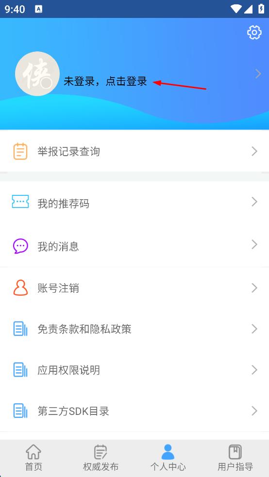 3、在個人中心頁面上方,找到“未登錄,點擊登錄”選項并點擊,進入登錄界面。