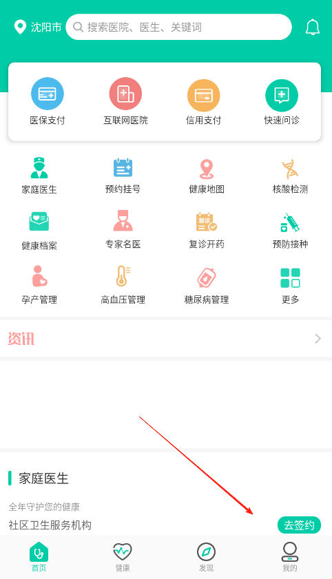 1、打開APP進(jìn)入首頁(yè),可使用醫(yī)保支付互聯(lián)網(wǎng)醫(yī)院等功能,點(diǎn)擊家庭醫(yī)生板塊去簽約社區(qū)衛(wèi)生服務(wù)機(jī)構(gòu),還能瀏覽資訊,了解健康知識(shí)與醫(yī)療動(dòng)態(tài)。