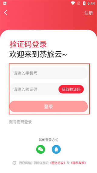 4、進(jìn)入登錄頁面后,找到手機(jī)號輸入框,輸入對應(yīng)的手機(jī)號碼,再點(diǎn)擊獲取驗(yàn)證碼按鈕等待填入。