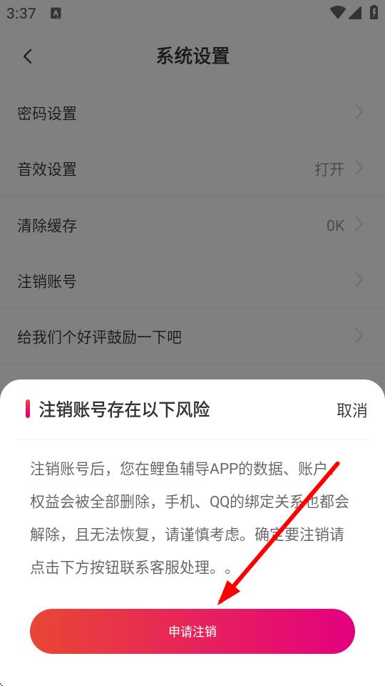 3、在系統(tǒng)設(shè)置的界面,點(diǎn)擊注銷賬號(hào)的按鈕,彈出風(fēng)險(xiǎn)提示框。