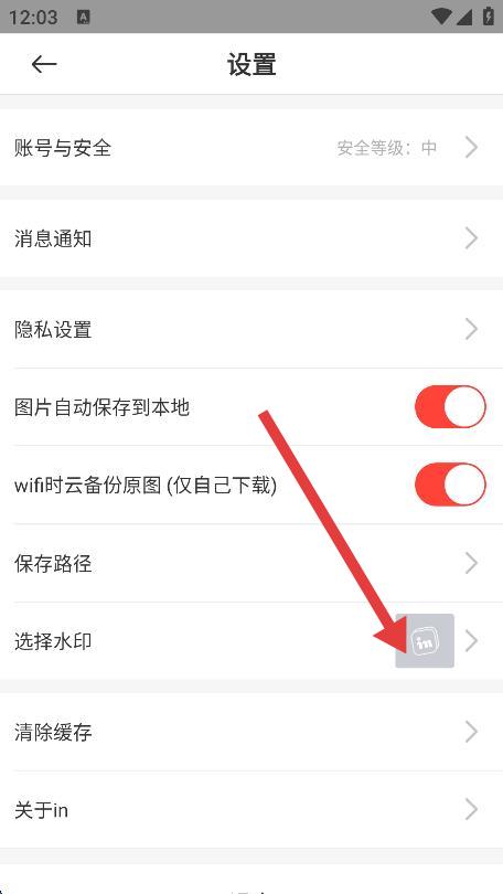 4、在設(shè)置頁(yè)面里,找到選擇水印選項(xiàng)并點(diǎn)擊。