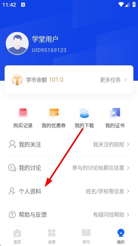 1、打開學(xué)堂在線APP,點擊底部導(dǎo)航欄中的我的進入個人頁面。