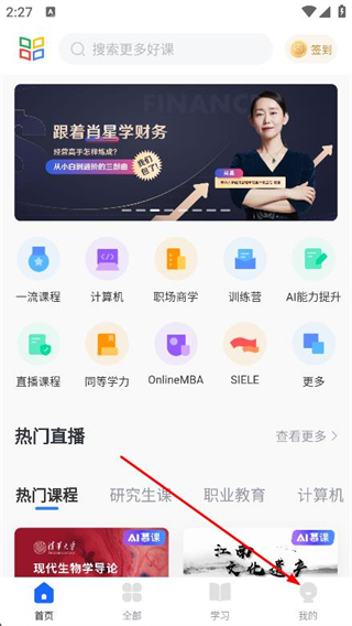 1、打開學(xué)堂在線,點擊底部導(dǎo)航欄的我的選項。