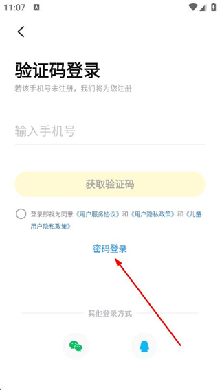 3、在登錄界面點(diǎn)擊密碼登錄選項(xiàng),切換到密碼登錄頁(yè)面。