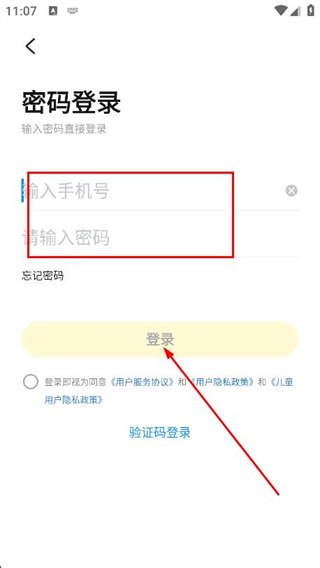 4、填寫(xiě)手機(jī)號(hào)和密碼,點(diǎn)擊登錄按鈕,即可完成賬號(hào)登錄。