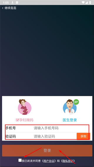 3、輸入手機(jī)號(hào)和驗(yàn)證碼,勾選用戶協(xié)議,點(diǎn)擊登錄即可登錄賬號(hào)。