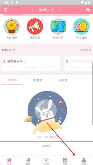 1、打開天津婦兒APP,點(diǎn)擊底部導(dǎo)航欄中的我的選項(xiàng)。