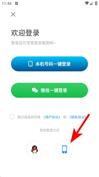 3、在界面點擊其他登錄方式中的手機圖標,進入手機好登錄頁面。