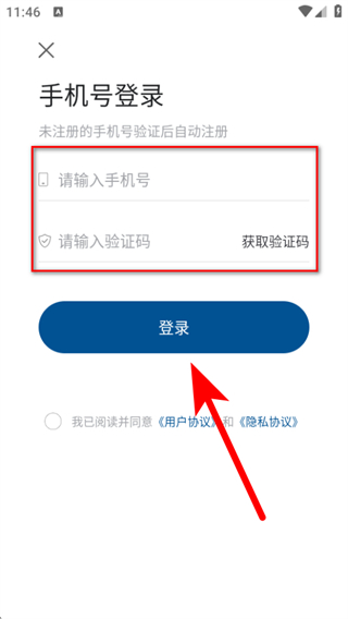 4、在頁面輸入手機號等信息后,點擊登錄完成驗證碼登錄操作。