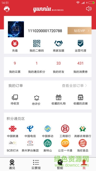 - 充值1元=1通兌積分+1云票,通兌積分可在全聯(lián)盟商戶1:1當錢花,云票可在云牛APP兌換超值炫酷商品。