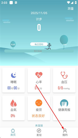 1、打開Wearfit 2.0 APP,點(diǎn)擊底部導(dǎo)航欄的我的。