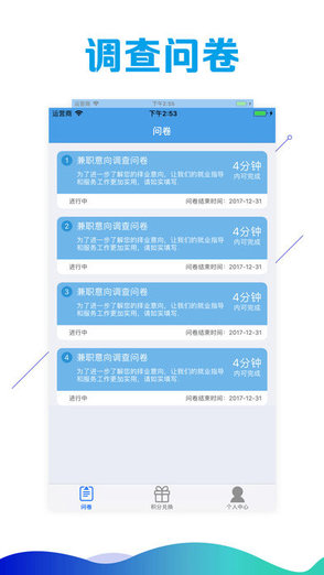 不管是在學(xué)生課余時間,還是上班族的上下班路上,還是寶媽媽在照顧孩子中,打開app,完成問卷,即可獲取相應(yīng)積分兌換成驚喜禮品!