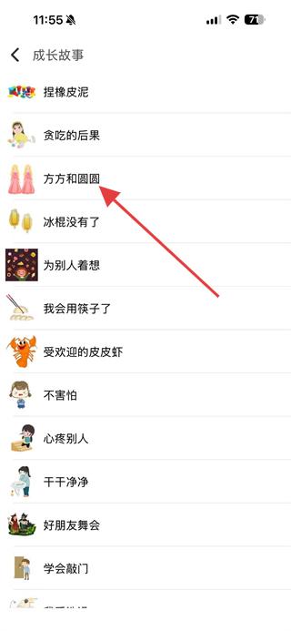 3、在成長(zhǎng)故事列表頁(yè)面,點(diǎn)擊方方和圓圓故事,進(jìn)入故事詳情頁(yè)面。