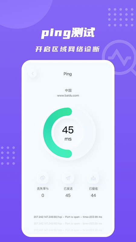 專業(yè)的Ping測速,隨時檢測網(wǎng)絡(luò)時延狀態(tài)。