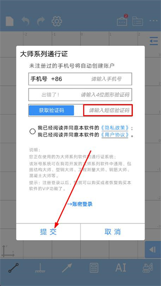 4、輸入收到的短信驗證碼,點擊提交即可完成賬號登錄。