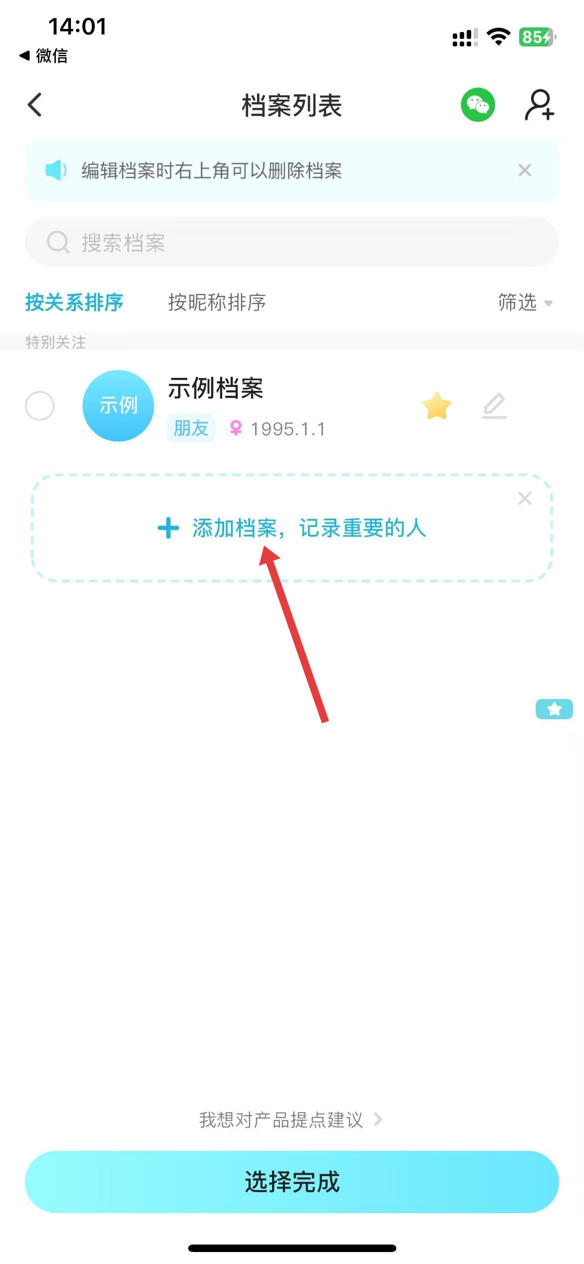 2、點擊右上角添加檔案,按照提示填寫相關(guān)信息完成檔案創(chuàng)建。