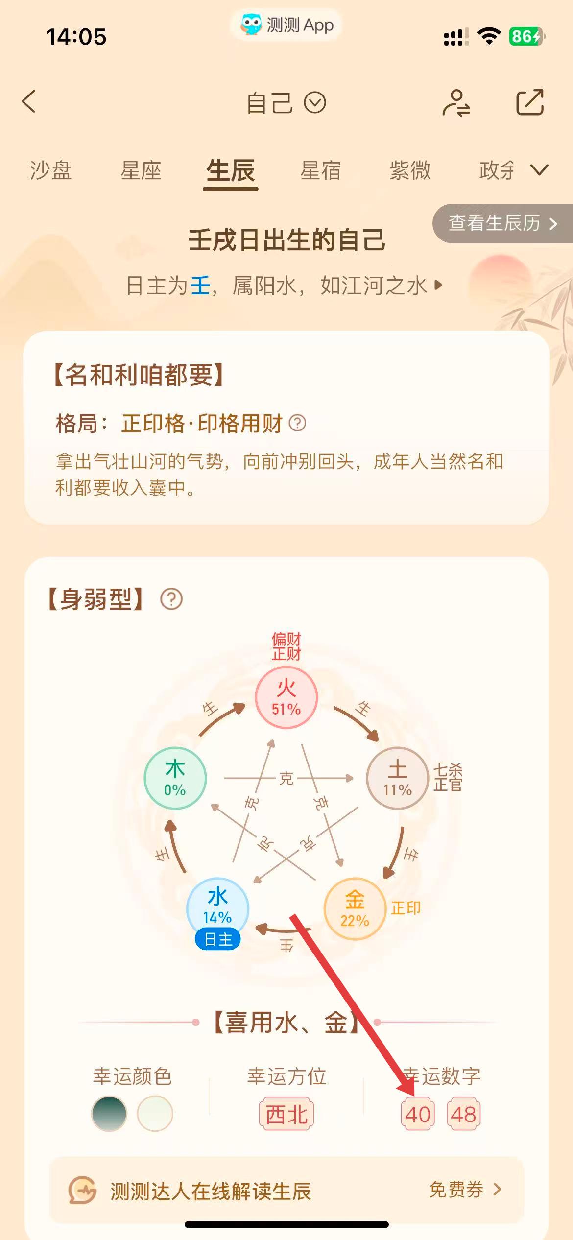 4、下滑頁面,即可在幸運數(shù)字處,看到對應(yīng)的幸運數(shù)字。