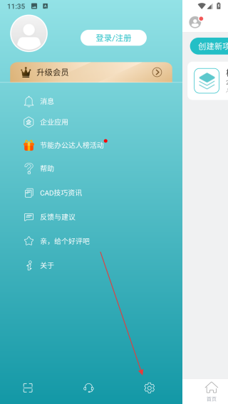 1、打開(kāi)浩辰CAD看圖王APP,點(diǎn)擊界面左上角的頭像圖標(biāo),調(diào)出側(cè)邊欄菜單。