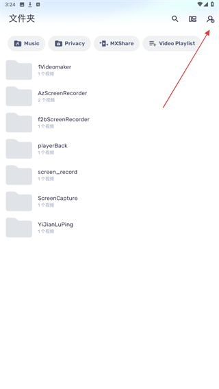 1、啟動(dòng)MX播放器的應(yīng)用,點(diǎn)擊首頁右上方的圖標(biāo)。