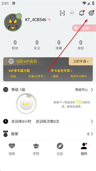 2、在個人中心頁面,點擊右上角設置圖標,進入設置界面。