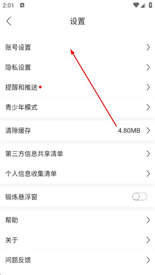 3、在設置界面,點擊賬號設置,進入賬號設置頁面。