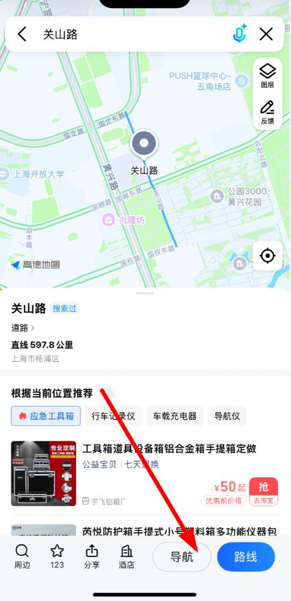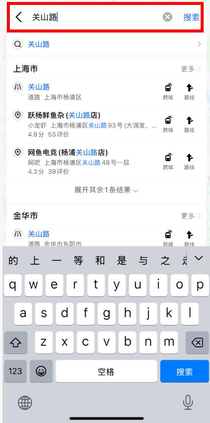 1、在高德地圖搜索欄輸入目的地,如關(guān)山路,點擊搜索找到對應(yīng)地點。