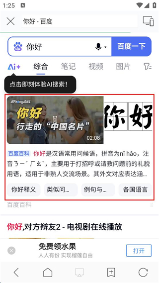 3、搜索結(jié)果出來后,點(diǎn)擊相關(guān)視頻或百科內(nèi)容,進(jìn)入詳情頁面。