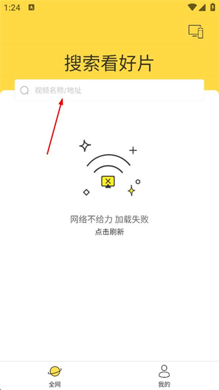 1、打開視頻搜索軟件,點(diǎn)擊搜索框。