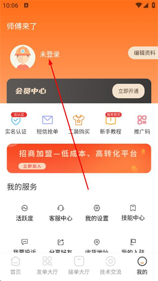 1、打開(kāi)師傅來(lái)了,點(diǎn)擊底部導(dǎo)航欄最右側(cè)我的選項(xiàng)。