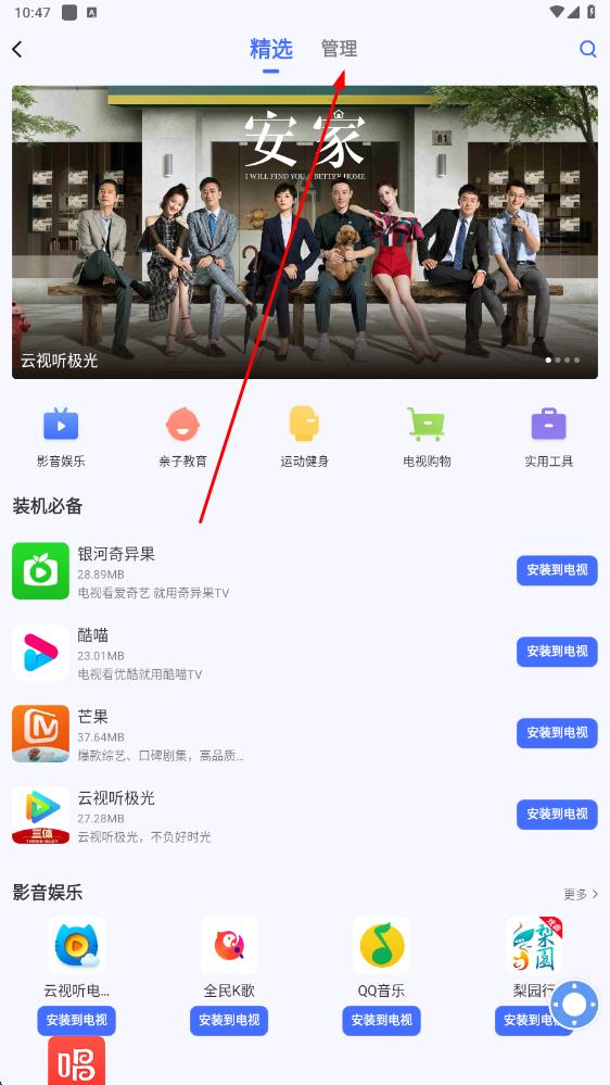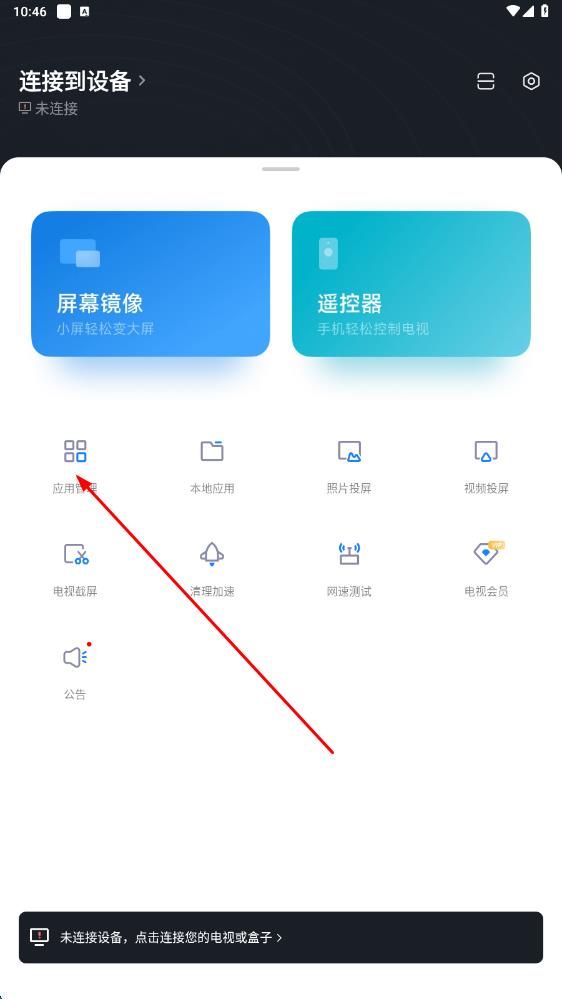 1、在手機(jī)上打開小米電視助手應(yīng)用,點(diǎn)擊應(yīng)用管理選項(xiàng)。