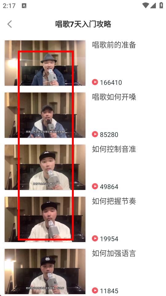 4、點(diǎn)擊所選課程進(jìn)入詳情頁(yè)面,選擇具體教學(xué)視頻,即可開(kāi)始免費(fèi)學(xué)習(xí)唱歌技巧。