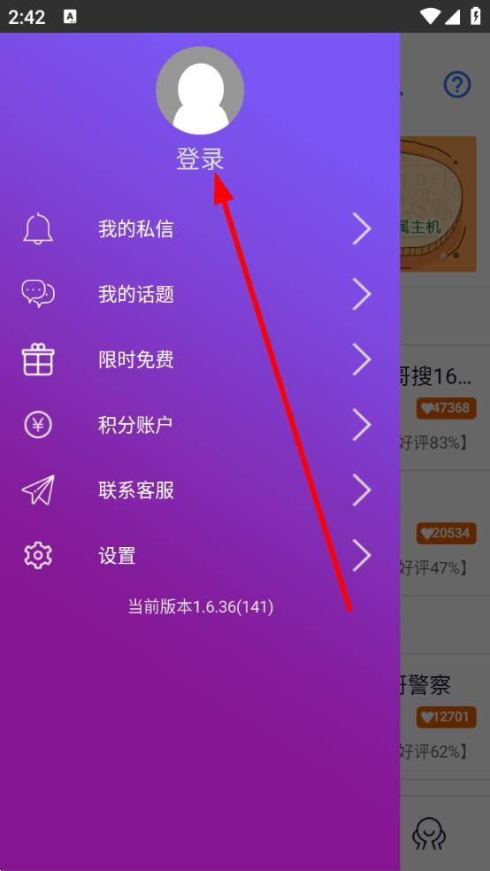 2、在彈出的側(cè)邊欄菜單中,找到并點擊登錄選項,進(jìn)入登錄相關(guān)操作頁面。