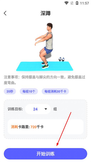 4、目標(biāo)設(shè)置完成后,點(diǎn)擊開(kāi)始訓(xùn)練,啟動(dòng)該運(yùn)動(dòng)的訓(xùn)練流程。